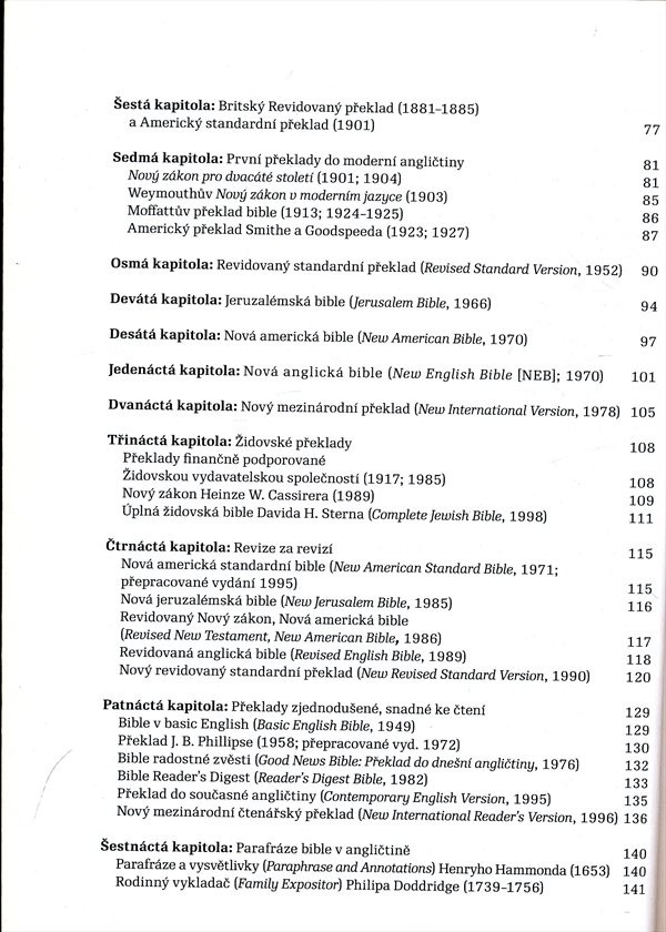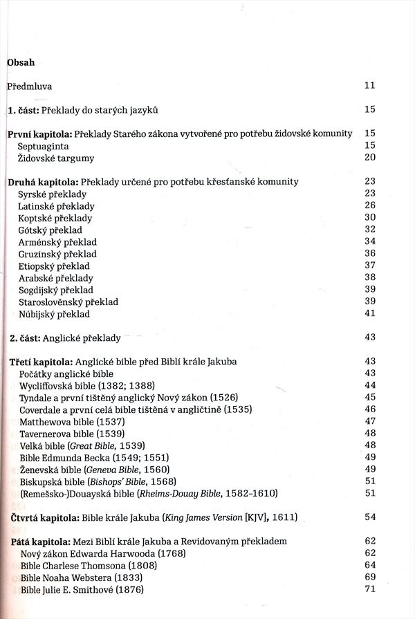 Monografie amerického teologa přináší přehled nejstarších překladů Bible (vč. staroslověnského). Jádrem práce je přehled překladů Bible do angličtiny od 11. století do současnosti.