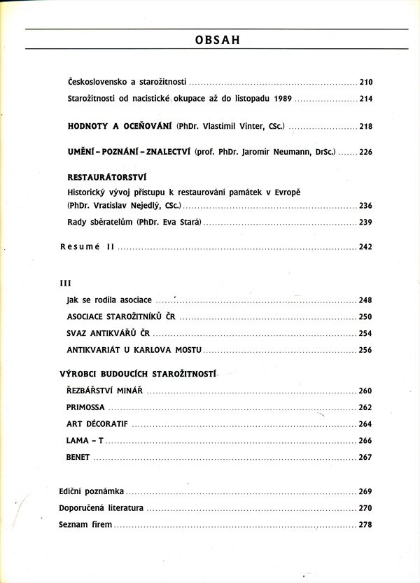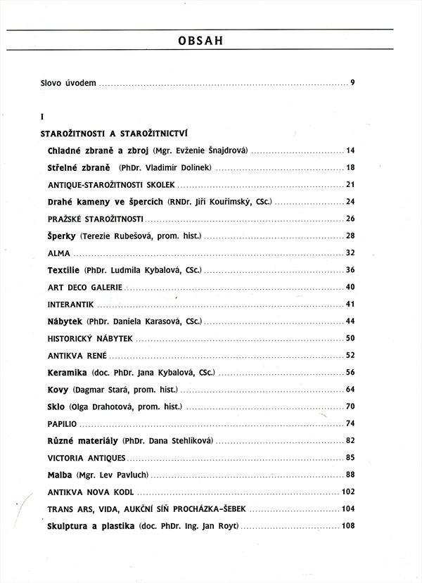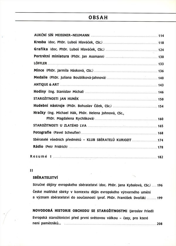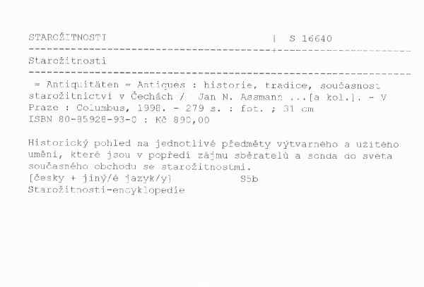 | Podnázev | historie, tradice, současnost starožitnictví v Čechách = Antiquitäten = Antiques |