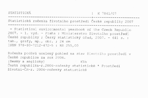 NázevStatistická ročenka životního prostředí České republiky 2007