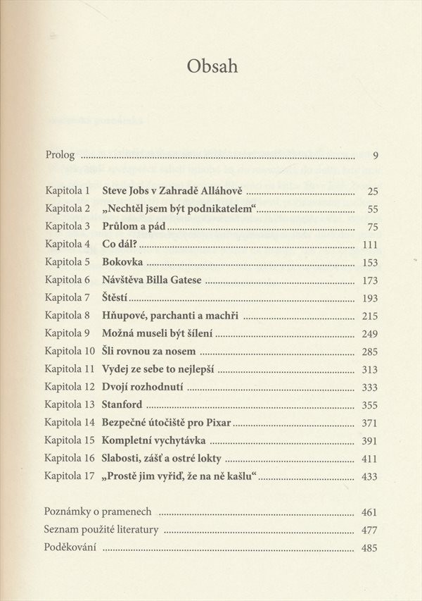 Zcela vyvrací pohled na Steva Jobse jako na člověka navždy ustrnulého mezi nepopiratelnou genialitou a nezvladatelným hulvátstvím. Nabízí odpověď na základní otázku o životní dráze a kariéře spoluzakladatele a šéfa Applu: Jak se bezohledný a arogantní mladík, jehož se raději zbavila i společnost, kterou sám založil, mohl nakonec stát nejúspěšnějším firemním lídrem a vizionářem současnosti? Nakladatelská anotace. Kráceno.