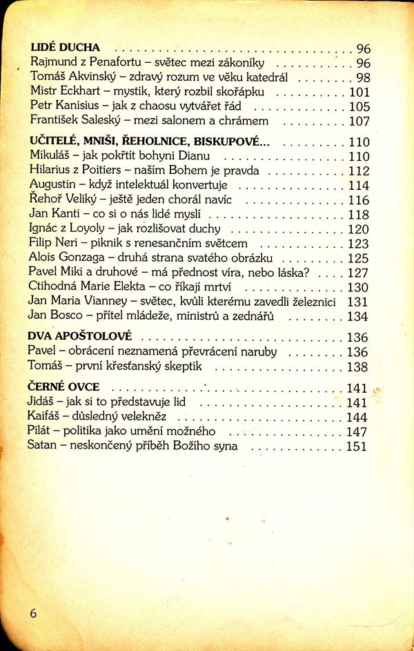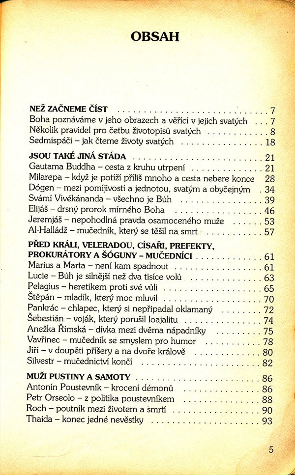Život, skutky, ale hlavně morální a boží přesvědčení velkých osobností světových náboženství. Příběhy nejsou pouhou hagiografií, ale spíše ponaučením o boží pravdě a morálních přesvědčeních, kterými by se měli řídit a inspirovat věřící v běžném životě. Důraz je zde kladen na velké postavy křesťanství, i když nechybějí příklady ze života např. východních myslitelů, doplněné o křesťanský komentář. Na závěr knihy je speciální kapitola věnovaná "černým ovcím" - varovným příkladům (Jidáš, Pilát atd.).
