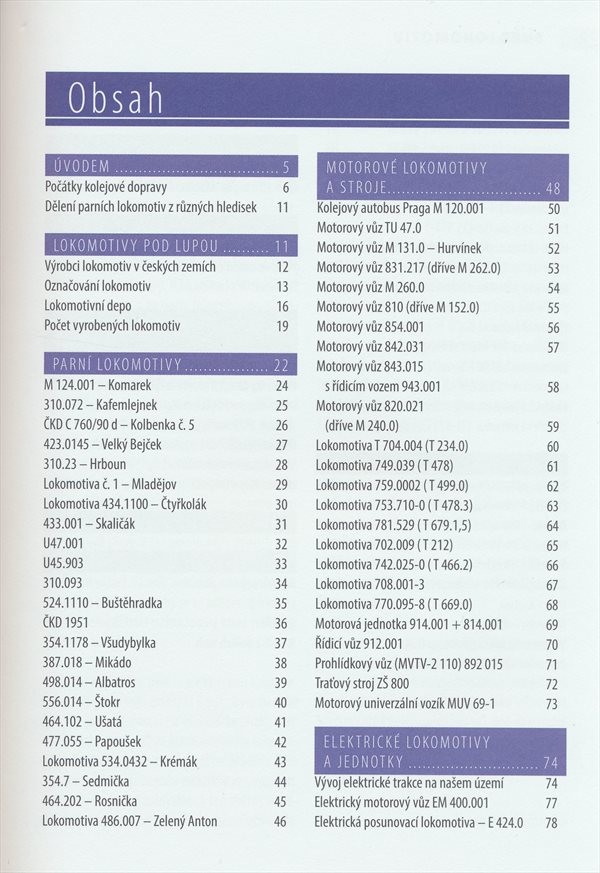 Kniha se věnuje železniční dopravě, jejímu provozu a počátkům. V úvodu představuje výrobce lokomotiv v českých zemích, jak se lokomotivy označují apod. Následuje atlas parních, motorových a elektrických lokomotiv, včetně vlaků nové generace. V závěru popisuje vybrané zajímavosti ze světa lokomotiv. Kniha je určena spíše pro mladší čtenáře a začátečníky v oblasti železniční dopravy.