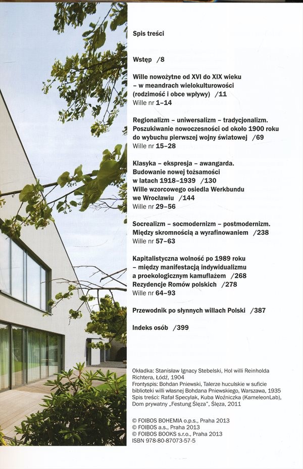 Monografie nabízí výběr devadesáti tří zajímavých vil a rodinných domů, které vznikly na území Polska v období od 16. do počátku 21. století. Sleduje proměny individuálního bydlení od renesance po zcela současné architektonické trendy.
