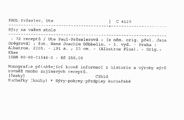 Monografie přinášející kromě informací z historie a výroby sýrů rovněž mnoho zajímavých receptů.