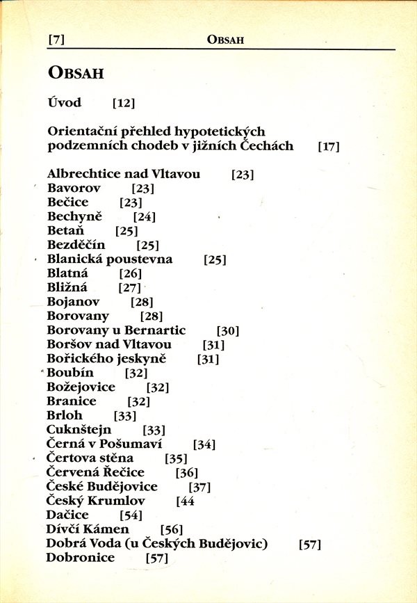 Autoři v úvodu zdůrazňují, že ve srovnání s předchozími díly (Praha, střední Čechy, západní Čechy) je podzemí jižních Čech ještě málo probádané. Vedle odborných průzkumů působí v této oblasti i řada amatérů - archeologů, speleologů, ale i psychotroniků a různých senzibilů, kteří prohledávají staré šachty, historické sklepy a zejména podzemní chodby pod hrady, zámky i městy a v neposlední řadě i jeskyně. - Vlastní text knihy tvoří abecední seznam míst, kde jsou nebo je možné podle nejrůznějších indicií předpokládat existenci podzemních prostor. - Doplněno černobílými fotografiemi, místním rejstříkem a výběrovým seznamem literatury.