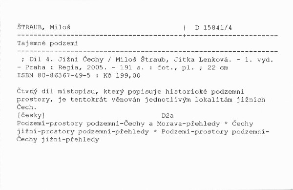 Čtvrtý díl místopisu, který popisuje historické podzemní prostory, je tentokrát věnován jednotlivým lokalitám jižních Čech.