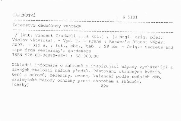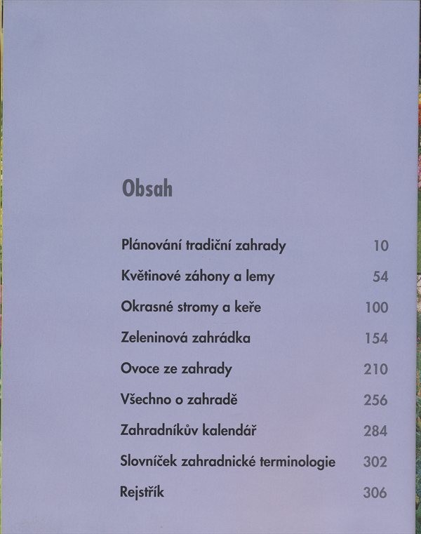 Základní informace o zahradě a inspirující nápady vycházející z dávných znalostí našich předků. Pěstování okrasných květin, keřů a stromů, zeleniny, ovoce, kalendář podle ročních dob, ekologické metody ochrany proti chorobám a škůdcům.