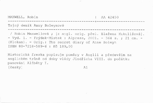 | Název | Tajný deník Anny Boleynové |