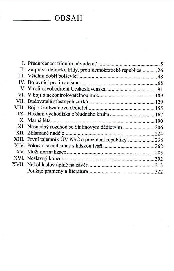 Kniha renomovaného historika podává prostřednictvím portrétů našich prezidentů zajímavý obraz politické situace v letech 1948-1989. Životní osudy Gottwalda, Zápotockého, Novotného, Svobody a Husáka, postup jejich kariéry, úzce spjatý s vůlí komunistické strany a jejich politická rozhodnutí diktovaná sovětským Ruskem, postupně sestavují obraz čtyřicetileté morální a ekonomické devastace společnosti a rozbití základních demokratických principů, na kterých byla v roce 1918 naše republika založena.
