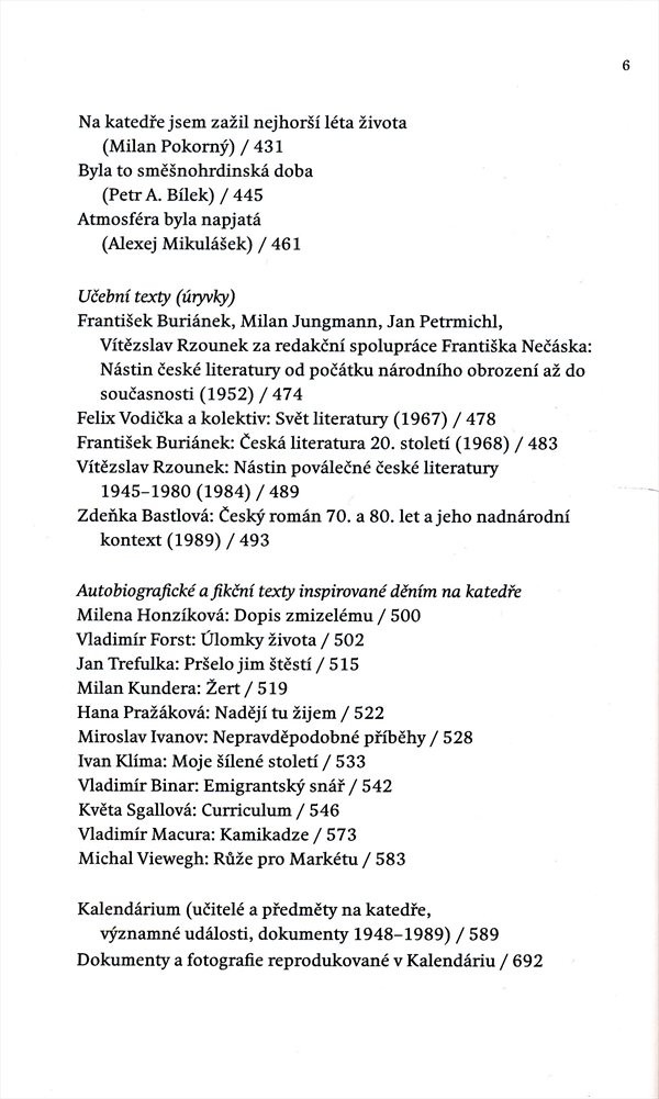 Proměny Katedry české literatury Filozofické fakulty UK od konce 40. let 20. století do roku 1989 - ve vzpomínkách pamětníků-učitelů, v literárních textech a dokumentech.