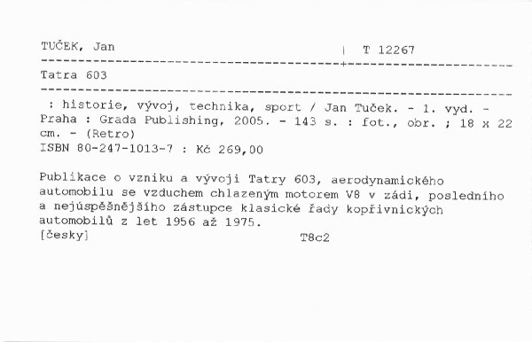 Publikace o vzniku a vývoji Tatry 603, aerodynamického automobilu se vzduchem chlazeným motorem V8 v zádi, posledního a nejúspěšnějšího zástupce klasické řady kopřivnických automobilů z let 1956 až 1975.