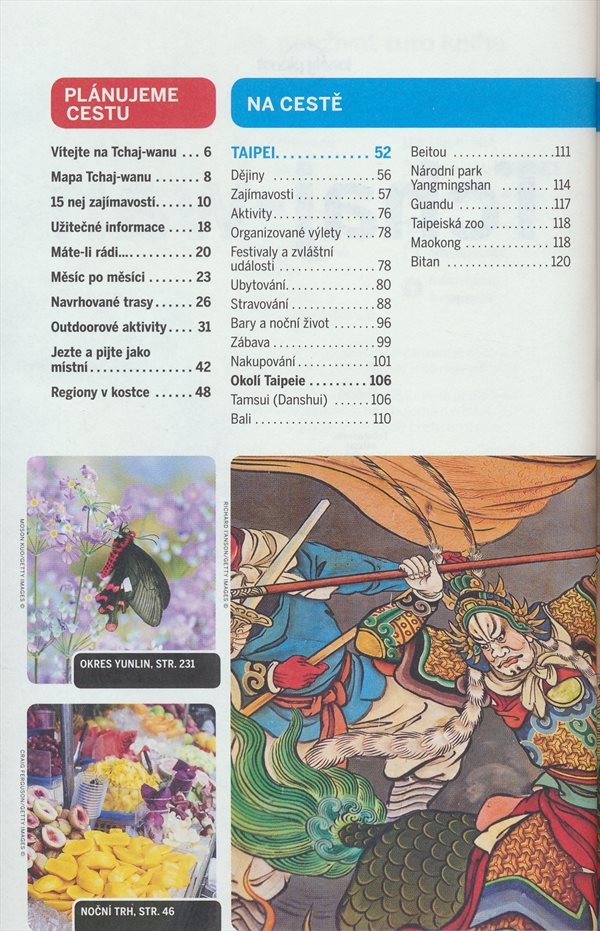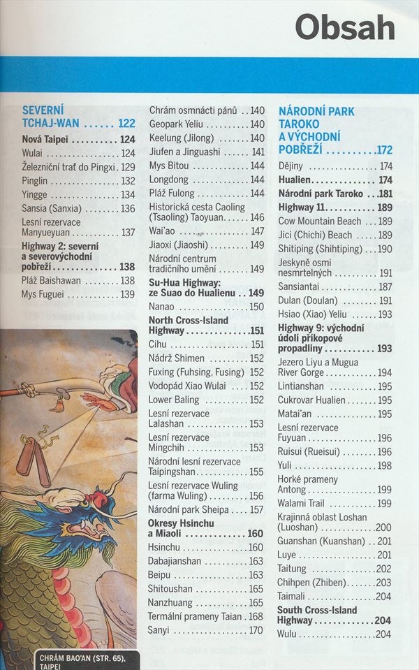 Průvodce po rozmanité krajině, hlavním městě Taipei plným kulturních památek, Tchajwanských ostrovech, národních parcích a chráněných oblastech. Stručné dějiny i současnost Tchaj-wanu, náboženství, umění. Praktické informace pro turisty.