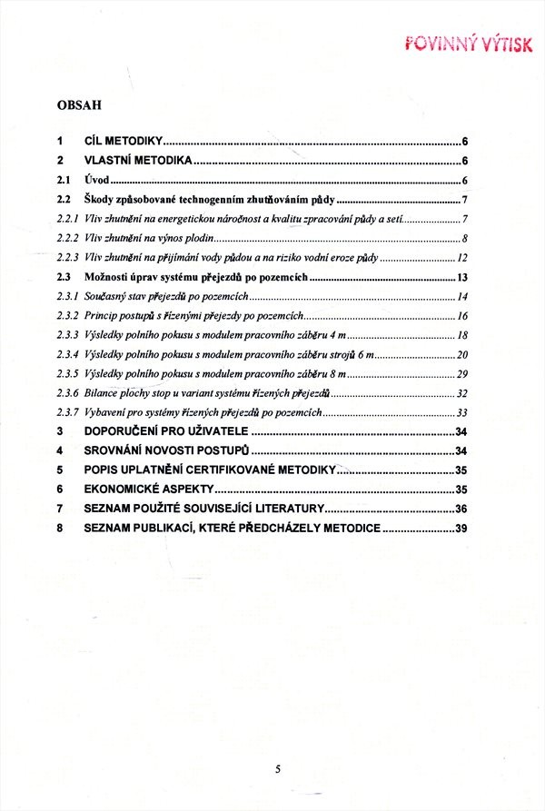 Možnosti zavádění technologie řízených přejezdů po pozemcích a dopady této technologie na energetickou náročnost zpracování půdy, výnosy plodin, vodní režim a vodní erozi půdy.