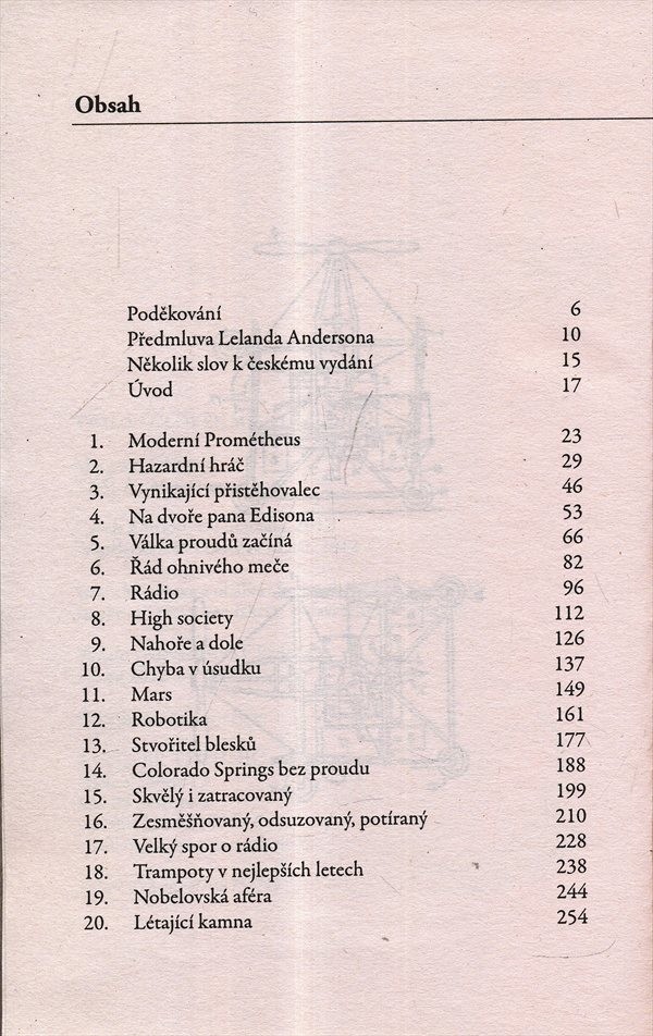 Kniha čtivou formou popisuje život jednoho z nejznámějších vynálezců, podrobně se zabývá jeho životem, úspěchy v oblasti výzkumu, vztahy, ale i finanční krizí, jež ho ke konci života postihla. Převážná část knihy se zabývá problémy s přijetím patentů a konflikty s jinými vynálezci, především s Edisonem a Marconim. Další část je věnována Teslovi jako takovému, jeho puntičkářskému chování, vizionářství a drahým projektům.