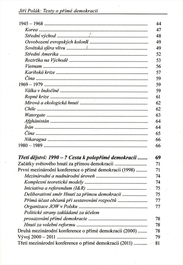 Historie demokracie od starověku do současnosti, přehled modelů budoucí demokracie, důvody k přechodu směrem k přímé demokracii, nástin globálních politicko-společenských trendů.