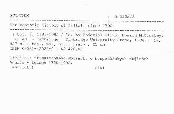 Třetí díl třísvazkového sborníku o hospodářských dějinách Anglie v letech 1700-1992.