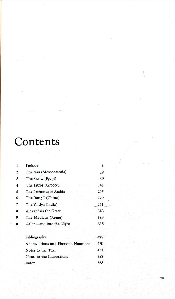 Kniha pojednává o počátcích medicíny ve Starém Řecku doby Hippokratovy, v císařském Římě, ale i starověkém Egyptě, Indii a Číně.