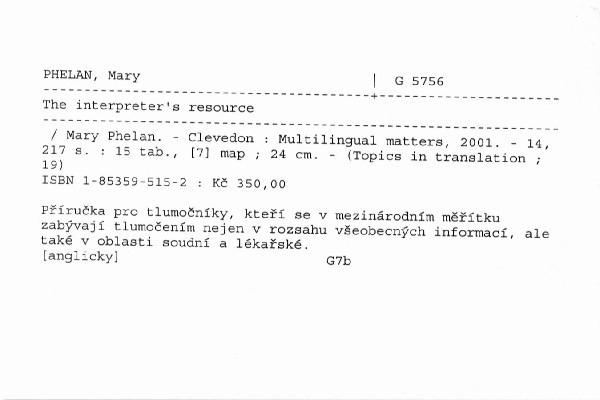 Příručka pro tlumočníky, kteří se v mezinárodním měřítku zabývají tlumočením nejen v rozsahu všeobecných informací, ale také v oblasti soudní a lékařské.
