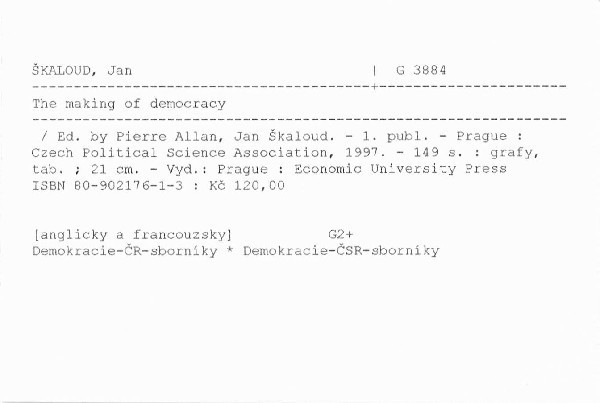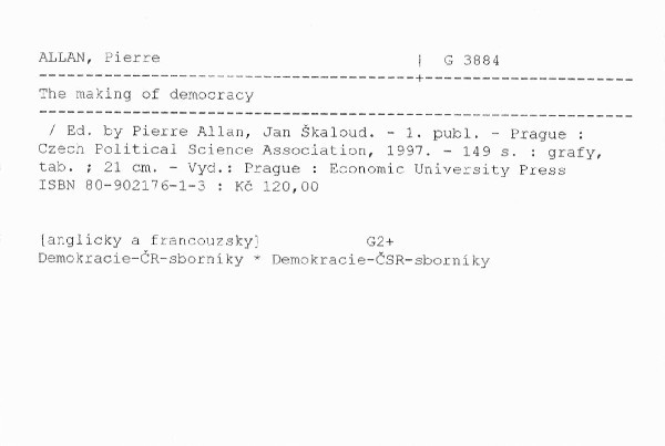 Vydání: Czech Political Science Association 1997 | Jazyk: angličtina a francouzština | Signatura: G 3884