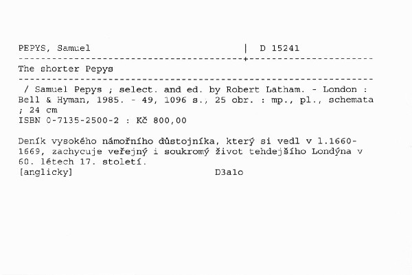 Název | The shorter Pepys |