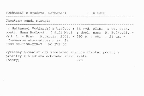 | Autor | Nathanael Vodňanský z Uračova ; [k vyd. připr. a ed. pozn. opatř. Hana Bočková], [Jiří Matl] |
