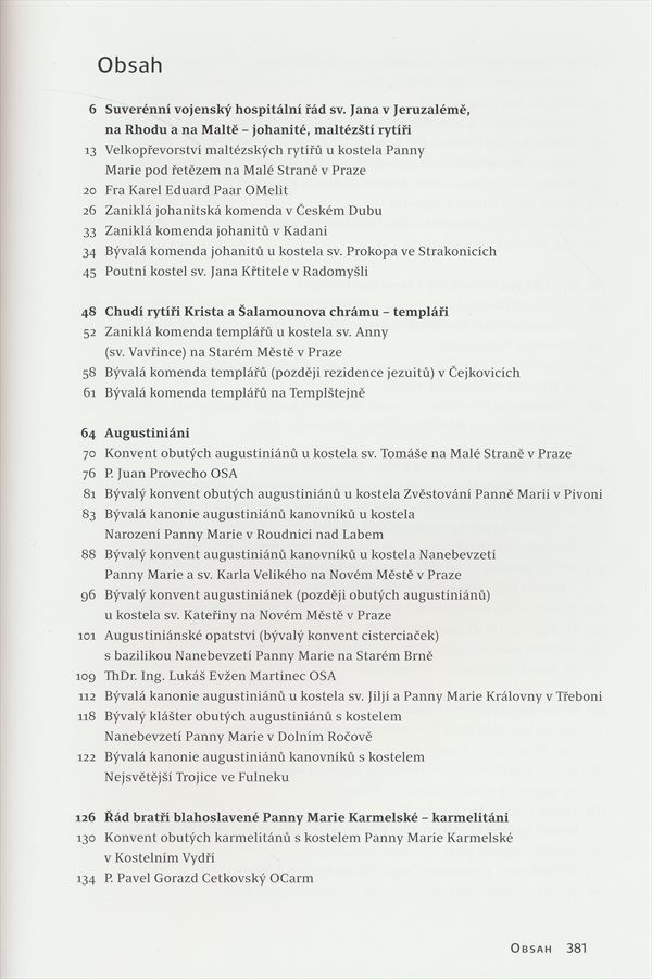 Kniha představuje osm dalších církevních řádů a jejich působení v Čechách a na Moravě. Podrobně jsou představeny kláštery ve vlastnictví jednotlivých řádů.