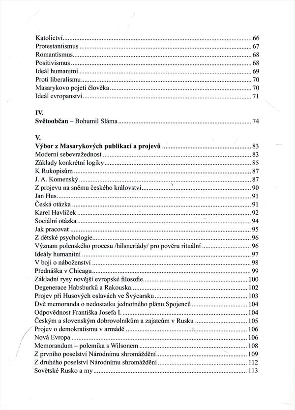 Texty přibližující Masarykovovo vědecké zaměření, ideje, projevy i publikace. Zároveň zde najdeme informace o novém universalismu, současných světových výzvách i Prohlášení Charty 2012.