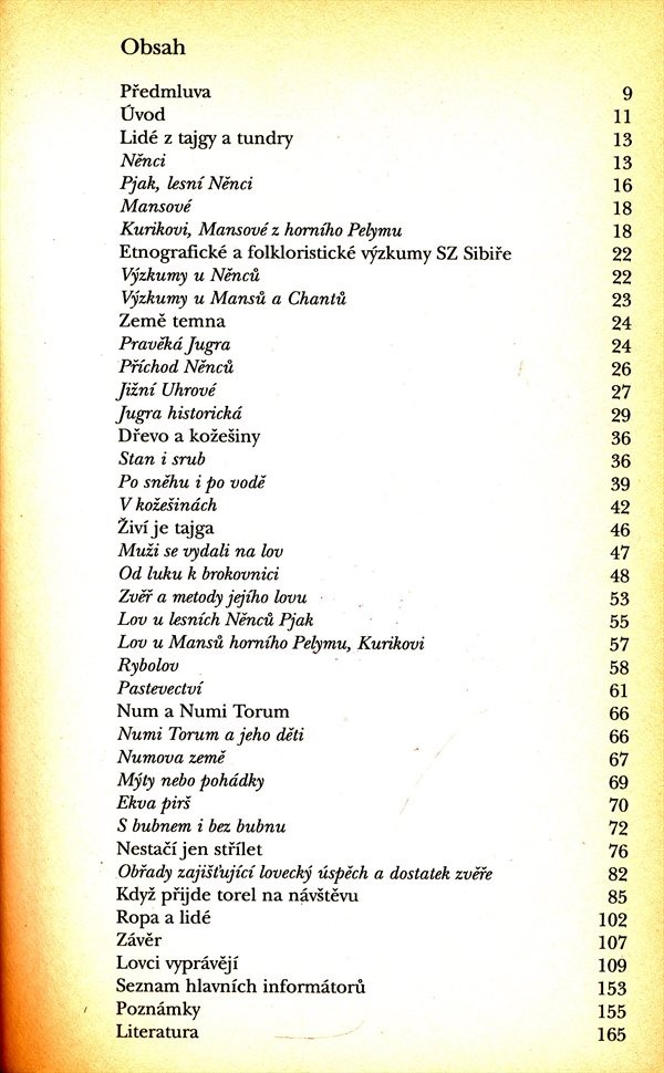 Autorovy etnografické studie jsou výsledkem jeho cesty po severozápadní Sibiři - území mezi Uralem a řekou Ob. Zabývá se životním stylem původních etnik - lovců, rybářů a pastevců. Soustřeďuje se na nevelké skupiny Mansů, Chantů a Něnců. Rozebírá historii kraje a začlenění těchto etnik do historických souvislostí i současné podmínky a problémy s kterými se tyto národnosti potýkají. Kniha je doplněna lidovým vyprávěním lovců a místními mýty.