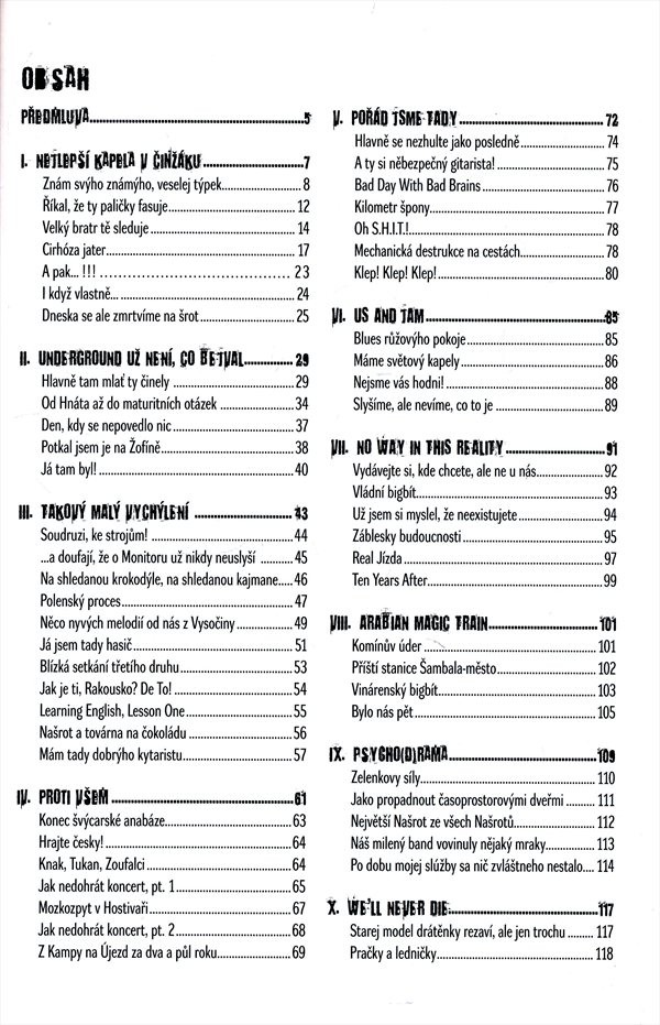 Známý český hudební novinář Radek Diestler dal dohromady poměrně vtipným způsobem historii původně havlíčkobrodské kapely Našrot, jejíž vůdčí postavou je kytarista, zpěvák a zároveň spisovatel a publicista Petr "Hraboš" Hrabalik. Skupina, jejíž prvopočátky sahají do 80. let 20. století, původně vznikla jako čistě hardcoreová (tvrdší odnož punku). Až do pádu socialismu v ČSSR byl Našrot nucen vystupovat coby undergroundová kapela pouze na neoficiálních akcích. Na domácí scéně si získali brzy úspěch, jejich prudké kytarové vypalovačky jim zajistily množství fanoušků. Jistou novotou byla také jejich undergroundová máničkovská vizáž, která poněkud konstrastovala s HC a punkovými aražmá jejich skladeb. Po pádu režimu se kapele otevřela možnost oficiálního nahrávání, čehož pochopitelně Našrot využil. Texty skupiny přešly z češtiny do angličtiny a produkce kapely se rozšířila z ryzího HC i do jiných žánrů. Po celá 90. léta i první dekádu nového století nepřestal Našrot vystupovat a nahrávat, a i když nepatří mezi naše nejznámější kapely (pochopitelně kvůli stylu, který vyznává), své jádro věrných fanoušků má stále a patří už mezi legendy alternativní scény. Celá tato historie doplněná množstvím černobílých fotografií je pečlivě zmapována v této knize, jejíž přílohou jsou i našrotovské DVD "Live in Praha" a CD "Unplugged".