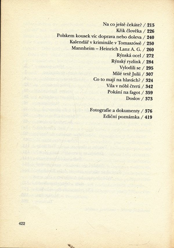 Autobiografické vzpomínky Richarda Glazara, který přežil pobyt v Treblince. Jako 22letý byl zařazen do jednoho z transportů směřujících do polské Treblinky, kde denně končily v plynových komorách životy tisíce židů z území obsazených hitlerovským Německem. Richard však nešel rovnou z vlaku do plynu, jak bylo zvykem, ale vybrali ho do záchytného tábora, aby třídil věci lidí z transportů. Zde přežil tyfus (tzv. nemoc treblinka) a během povstání v roce 1943 se mu podařilo spolu s přítelem Karlem utéci. Zbytek války pak strávil v Německu, kam ho polská policie poslala na práci. Po válce se stal jedním z důležitých svědků a svoje vzpomínky na Treblinku sepsal. Politická situace v Československu však neumožňovala jejich vydání. Roku 1969 Richard Glazar emigroval z okupovaného Československa do Švýcarska. Jeho kniha se vzpomínkami na Treblinku u nás vyšla poprvé až v roce 1994 (Praha, Torst).