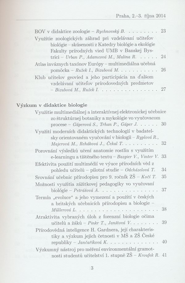 | Záhlaví | Trendy v didaktice biologie (2014 : Praha, Česko) |