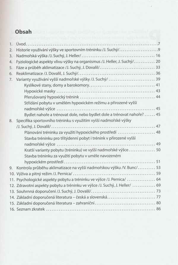 Od té doby nejenže váha pobytu a tréninku ve vyšší nadmořské výšce v přípravě řady sportů podstatně vzrostla, ale přibyly také nové poznatky. Některé kapitoly z původní publikace byly aktualizovány, některé části jsou novějšího data. Věříme, že současná verze, zpracovaná v roce 2014 a vydávaná v nové edici Českého olympijského výboru, přispěje k dalším úvahám, jak trénink ve vyšší nadmořské výšce účinně a ekonomicky využívat. Nakladatelská anotace.