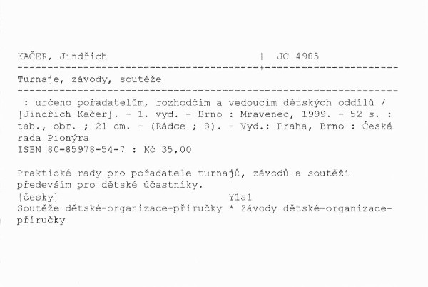 | Podnázev | určeno pořadatelům, rozhodčím a vedoucím dětských oddílů |