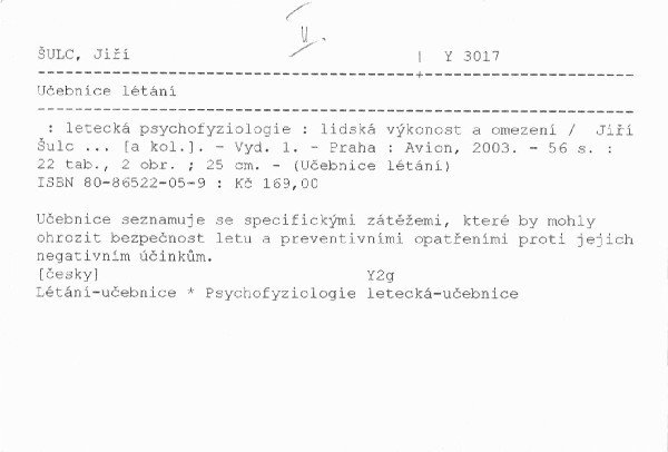 | Podnázev | letecká psychofyziologie : lidská výkonost a omezení |