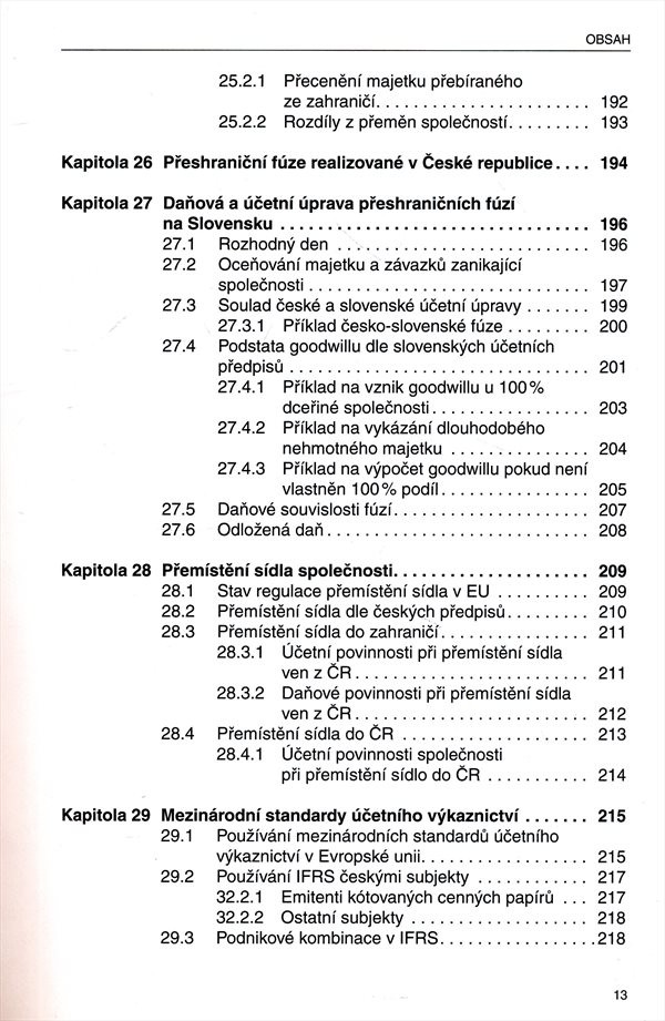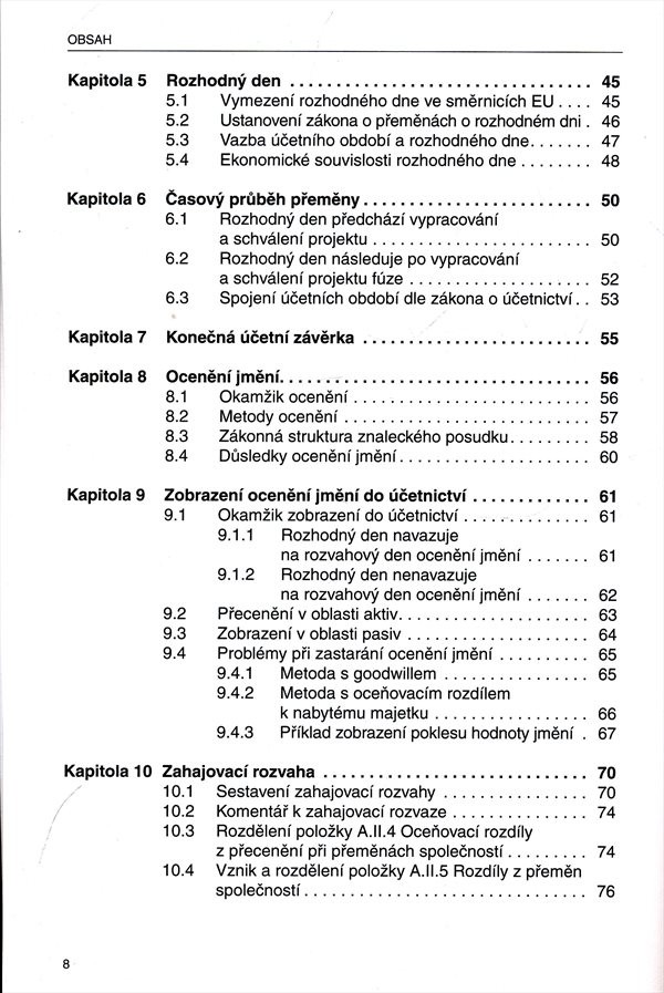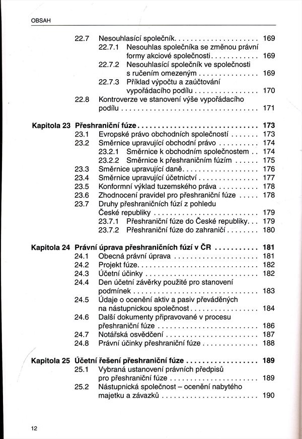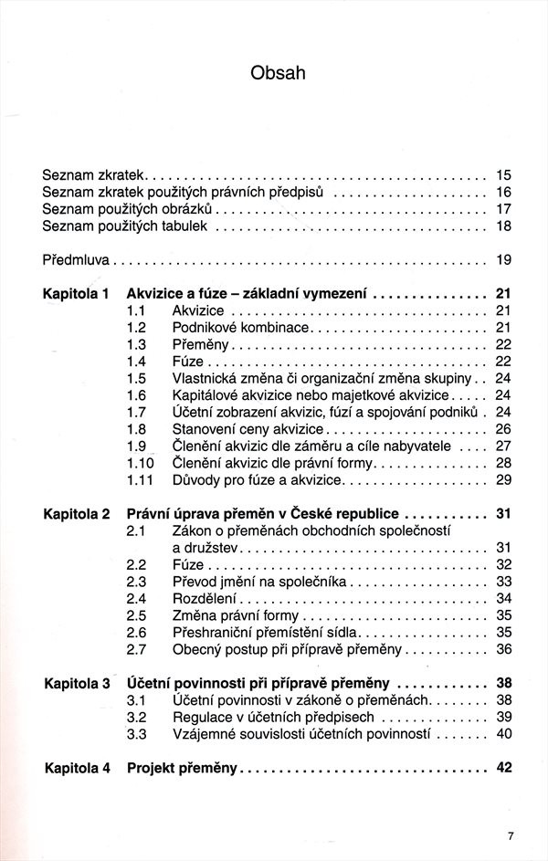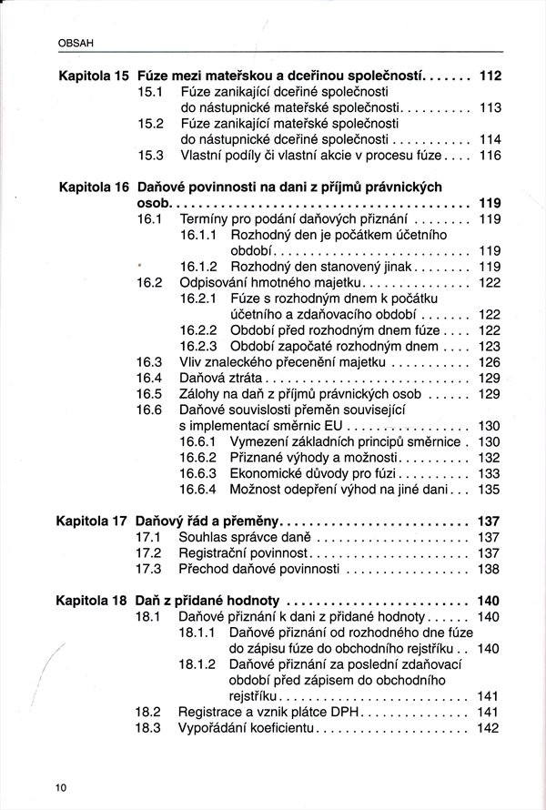 Vymezení pojmů fúze a akvizice, česká právní úprava přeměn, účetní povinnosti společností vstupujících do fúze nebo rozdělení, přehled daní a daňových povinností, výklady o právních úpravách i účetních povinnostech přeshraničních fúzí.
