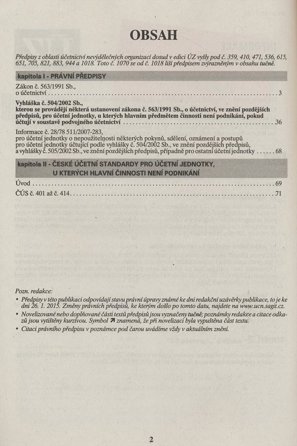 Podnázevzákon, vyhláška, standardy : novela účetní vyhlášky od 1.1.2015 : redakční uzávěrka 26.1.2015