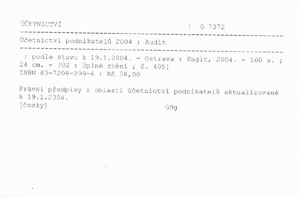 Právní předpisy z oblasti účetnictví podnikatelů aktualizované k 19.1.2004.