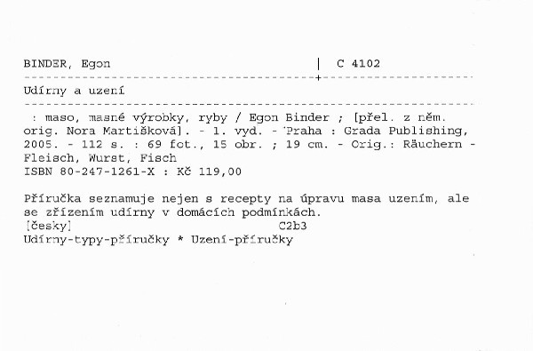 Příručka seznamuje nejen s recepty na úpravu masa uzením, ale i se zřízením udírny v domácích podmínkách.