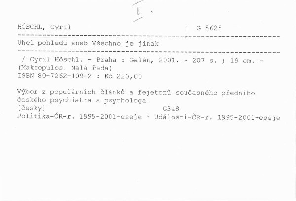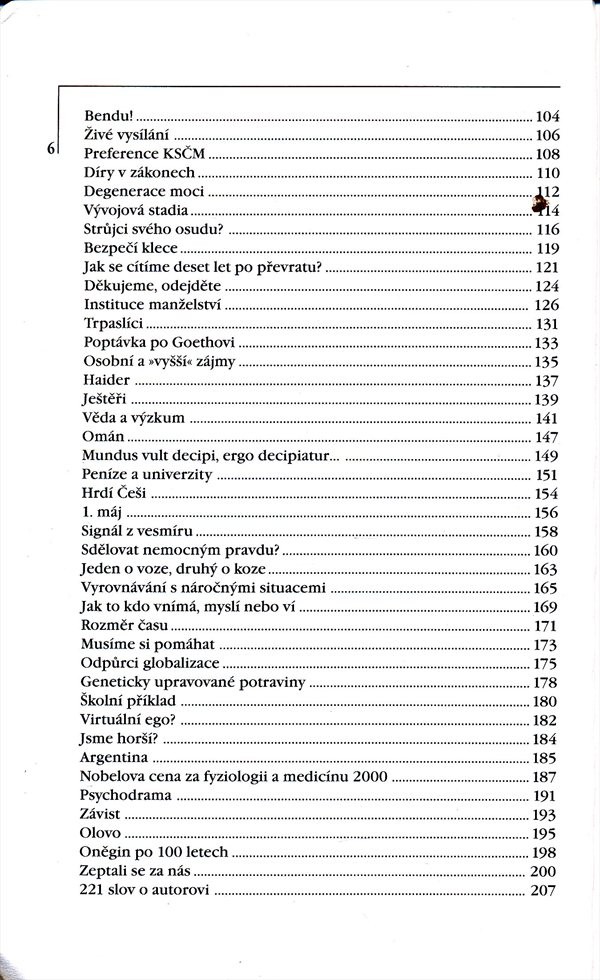 Texty, které autor proslovil v rozhlase nebo uveřejňoval v českých denících, zahrnují období od r. 1995 do r. 2001. Reaguje zde bezprostředně na soudobé události nebo uvažuje o věcech a jevech, které jsou nadčasové. - Kniha tak představuje soubor esejů a zamyšlení nad mnoha otázkami vědy, politiky, kultury v nejširším slova smyslu.