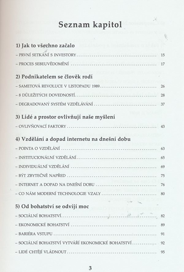 Mladý český autor se zamýšlí nad tím, proč velká část podnikatelských projektů končí spíše neúspěchem a proč současná společnost nevyužívá svůj skutečný potenciál. Čerpá přitom i ze svých osobních zkušeností.
