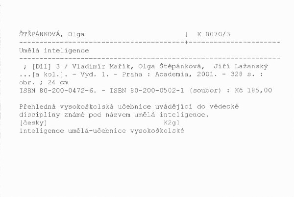 | Autor | Vladimír Mařík, Olga Štěpánková, Jiří Lažanský ...[a kol.] |