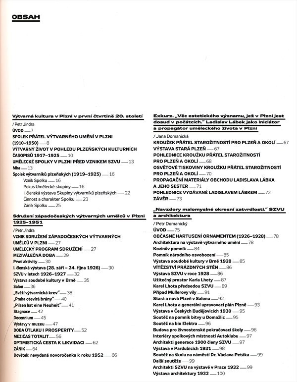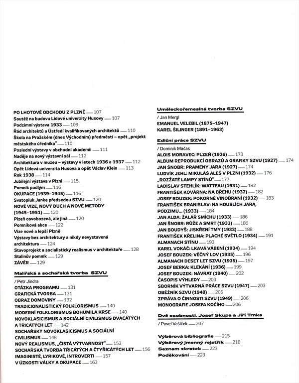 Monografie sleduje přínos SZVU a aktivity jeho představitelů v oblasti architektury, malířství, sochařství, uměleckořemeslné tvorby a v oblasti vydavatelské práce.