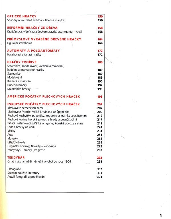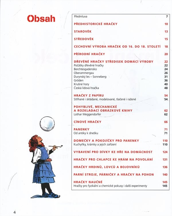 Dřevěné hračky, cínové figurky, panenky, pokojíčky pro panenky, natahovací autíčka, stavebnice, plyšoví medvídci a spousta dalších hraček. Hračka jako životní nezbytnost, historický vývoj od pravěku do počátku 20. století. Mnoho fotografií v knize pochází z dvacetileté práce natáčení televizních filmů v soukromých i státních sbírkách po celém světě, z nichž mnohé kolekce již neexistují.
