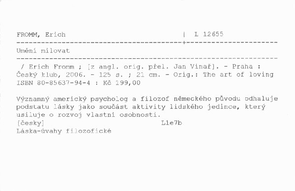 | Autor | Erich Fromm ; [z angl. orig. přel. Jan Vinař] |