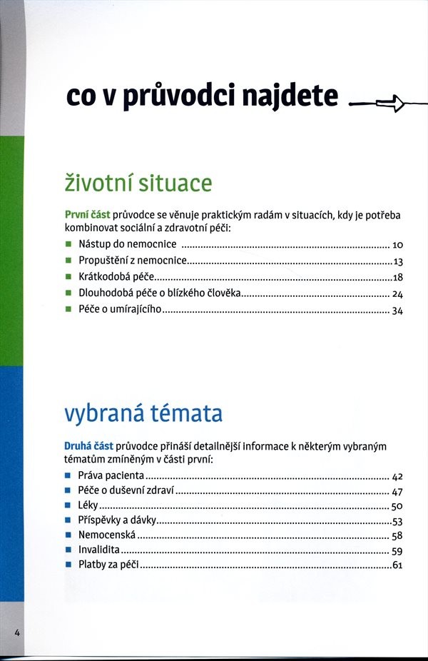 Publikace obsahuje rady, návody a řešení v případě nečekaných životních situací. Tento knižní průvodce se zaměřuje na zdravotní péči a sociální služby v kraji Vysočina.