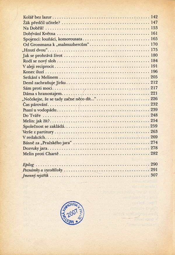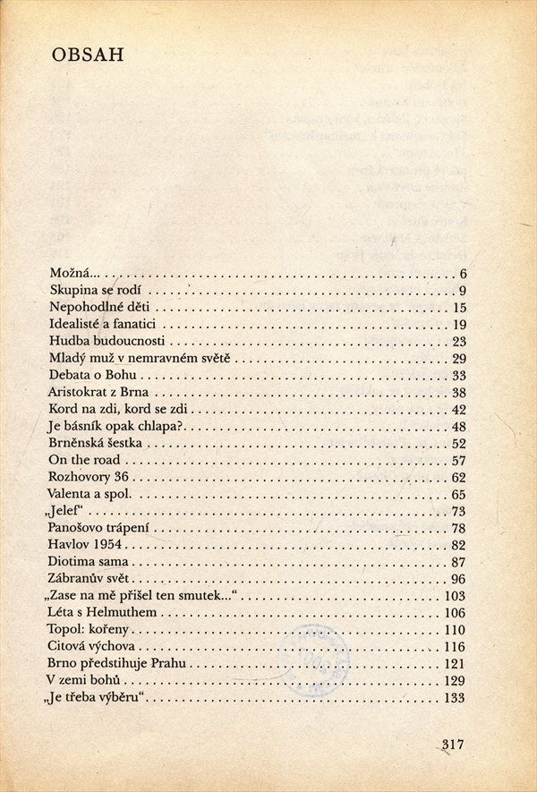 Kniha přibližuje několik životních osudů sdružených do specifické literární skupiny, která se ustavila na přelomu padesátých a šedesátých let dvacátého století.