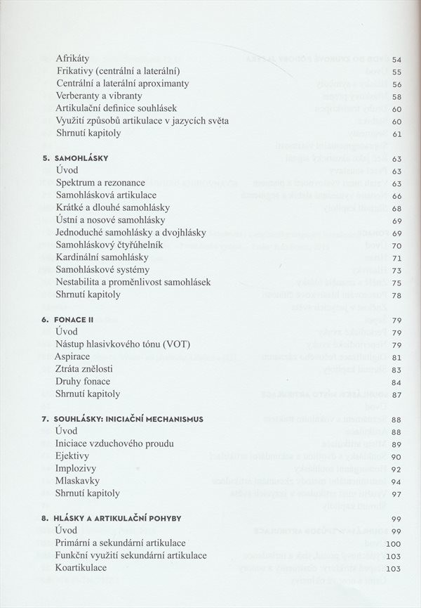 Publikace seznamuje se základními pojmy obecné fonetiky, zahrnuje informace o artikulačním popisu hlásek, akustické analýze řeči, instrumentálních technikách fonetického výzkumu, vztahu výslovnosti a písma, fonetické transkripci, percepci řeči.