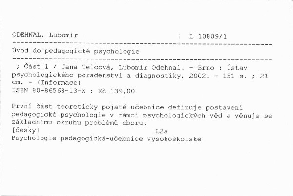 NázevÚvod do pedagogické psychologie