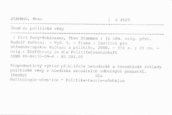 | Autor | Dirk Berg-Schlosser, Theo Stammen ; [z něm. orig. přel. Rudolf Kučera] |
