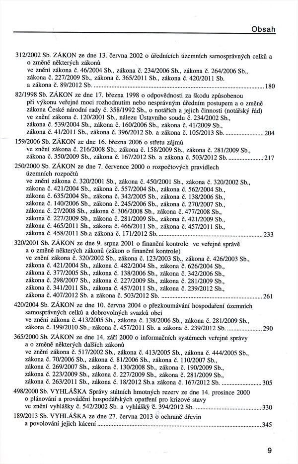 Zákony z oblasti územní samosprávy vycházející z právního stavu k 1. 9. 2013 a novelizace k 1. 1. 2014.